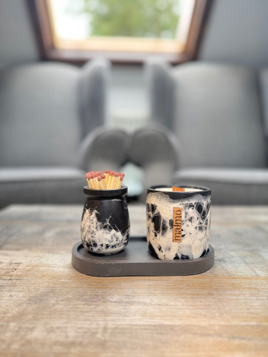 Refillable Handmade Candle Pot Set ~ Gold and Charcoal.