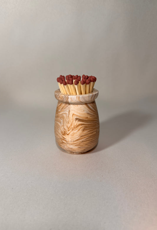 Handmade Match Pot, Matches & Striker ~ Wood Effect