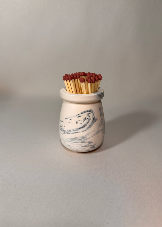 Handmade Match Pot, Matches & Striker ~ Granite